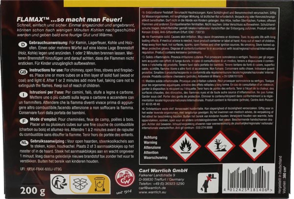 FLAMAX süütekuubikud sobivad nii kaminasse, ahju, pliidi alla, lõkkesse kui ka grillisöe süütamiseks.